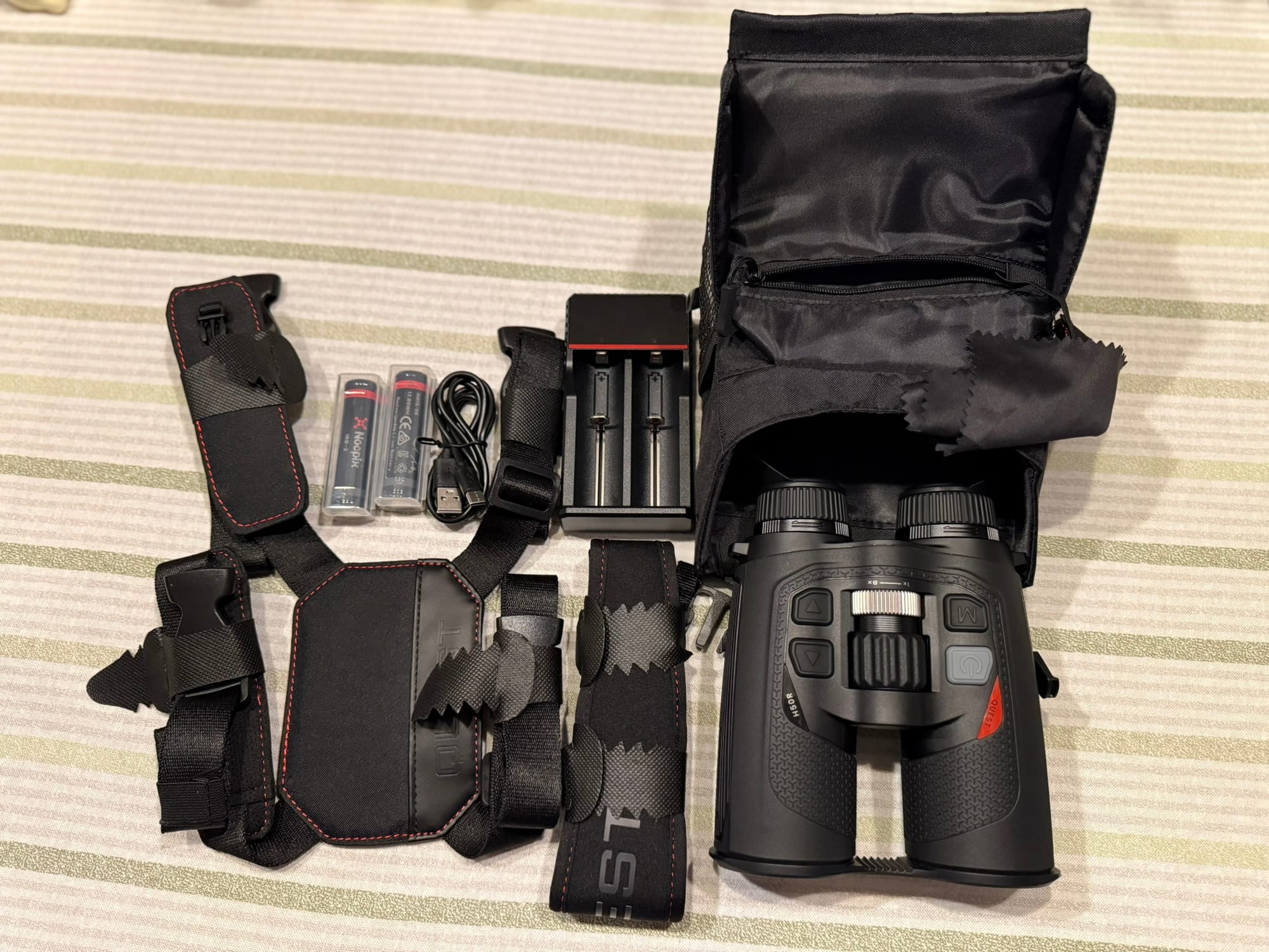 Torba za dvogled, pojas za nošenje na prsima, izuzetno udoban remen za nošenje oko vrata, punjač i čak dvije baterije (uređaj ima i jednu ugrađenu).